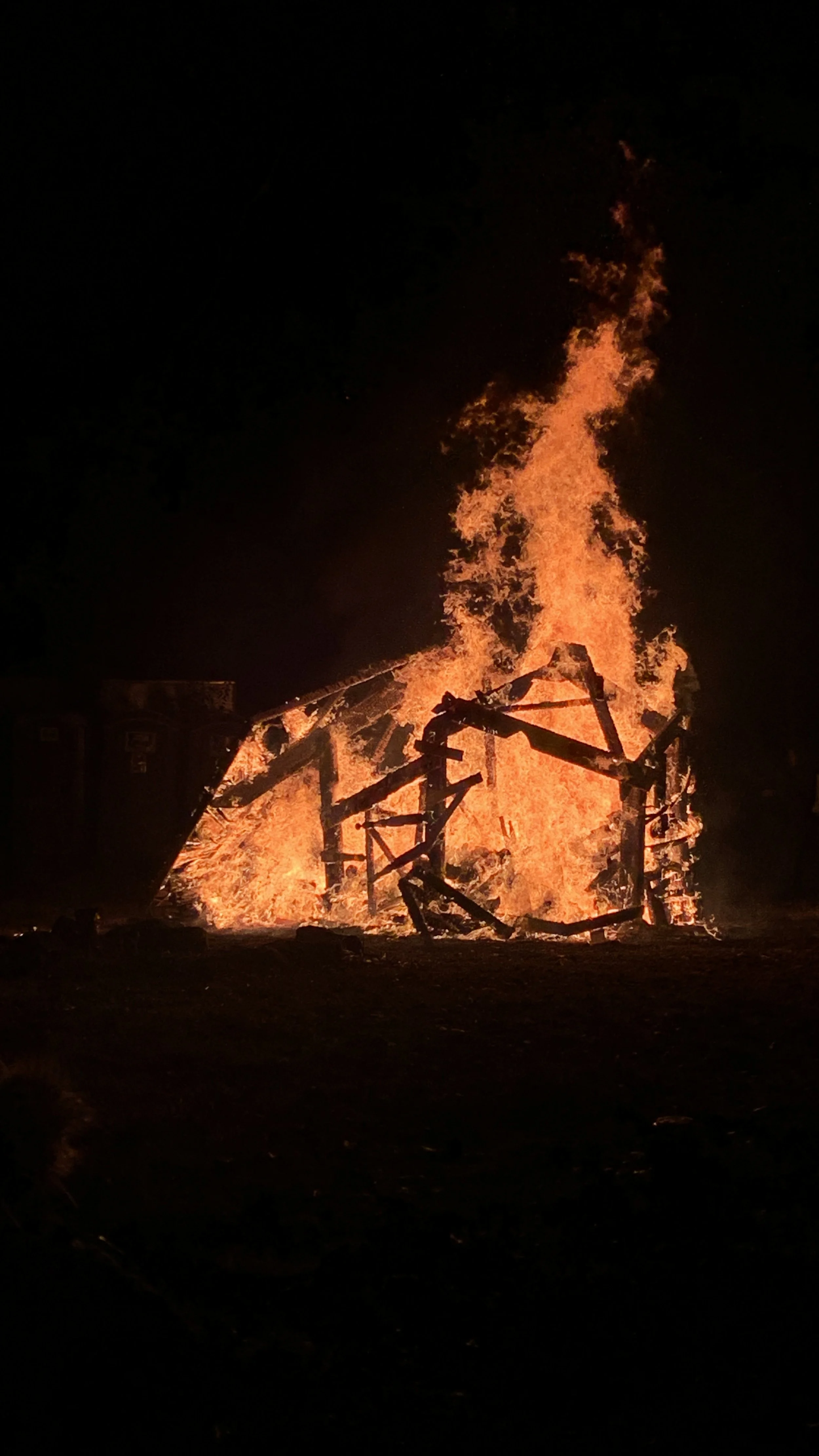 This project served as both an emotional and physical labor of love, and as my first sculptural piece at this scale, it challenged me to combine intuitive creativity with technical planning and hands-on construction. I led a small team of volunteers, coordinated build weekends, and handled all safety planning and burn logistics.